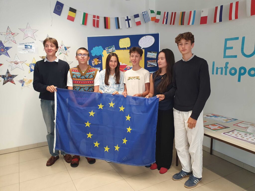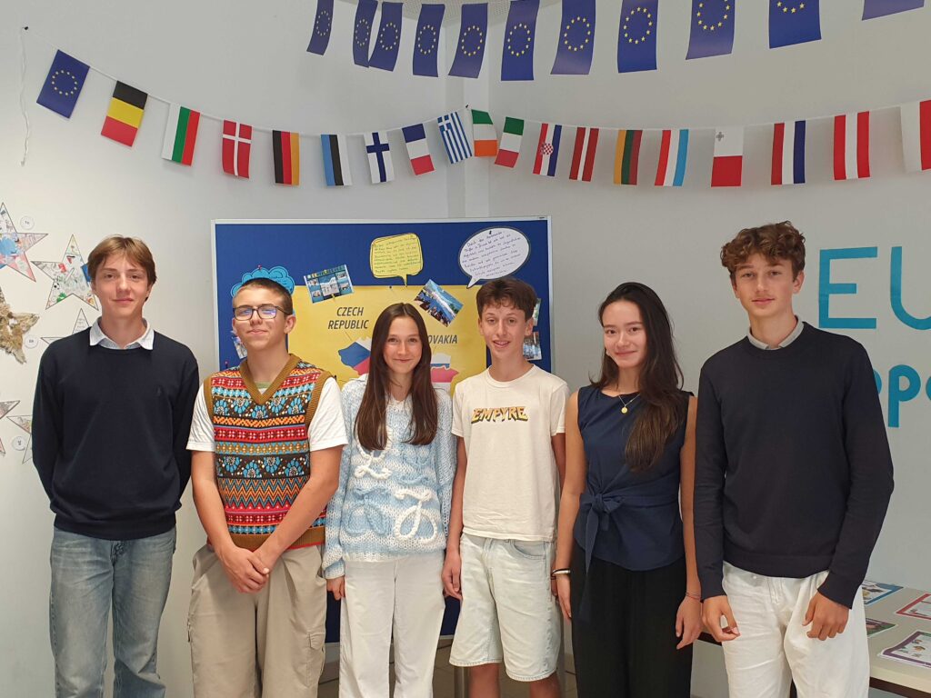 Bastian Kirchmayr, Lionel Merkel und Lea Reiffinger (7e) bleiben dem Junior-Botschafterteam erhalten und werden zusammen mit Alina, Benjamin und Luis die Aktivitäten des EU-Botschafterprogramms an unserer Schule mitgestalten.